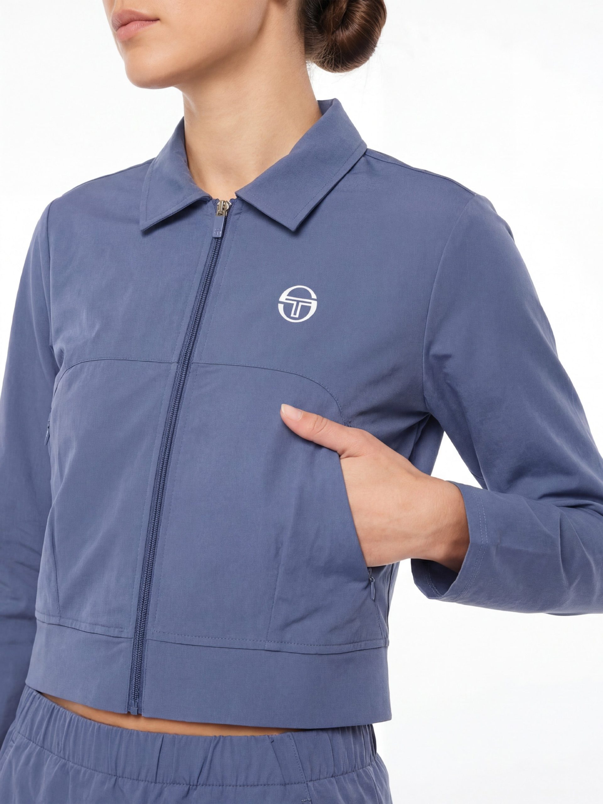 Meticulously crafted from durable stretch-cotton ripstop fabric, our Aria Track Jacket is designed for freedom of movement without sacrificing style. Lightweight and breathable, this athletic full-zip track jacket features curved seam detailing with a cropped and fitted silhouette for a refined look.Pair with the Aria Track Skirt for the full fit. (Sold separately)