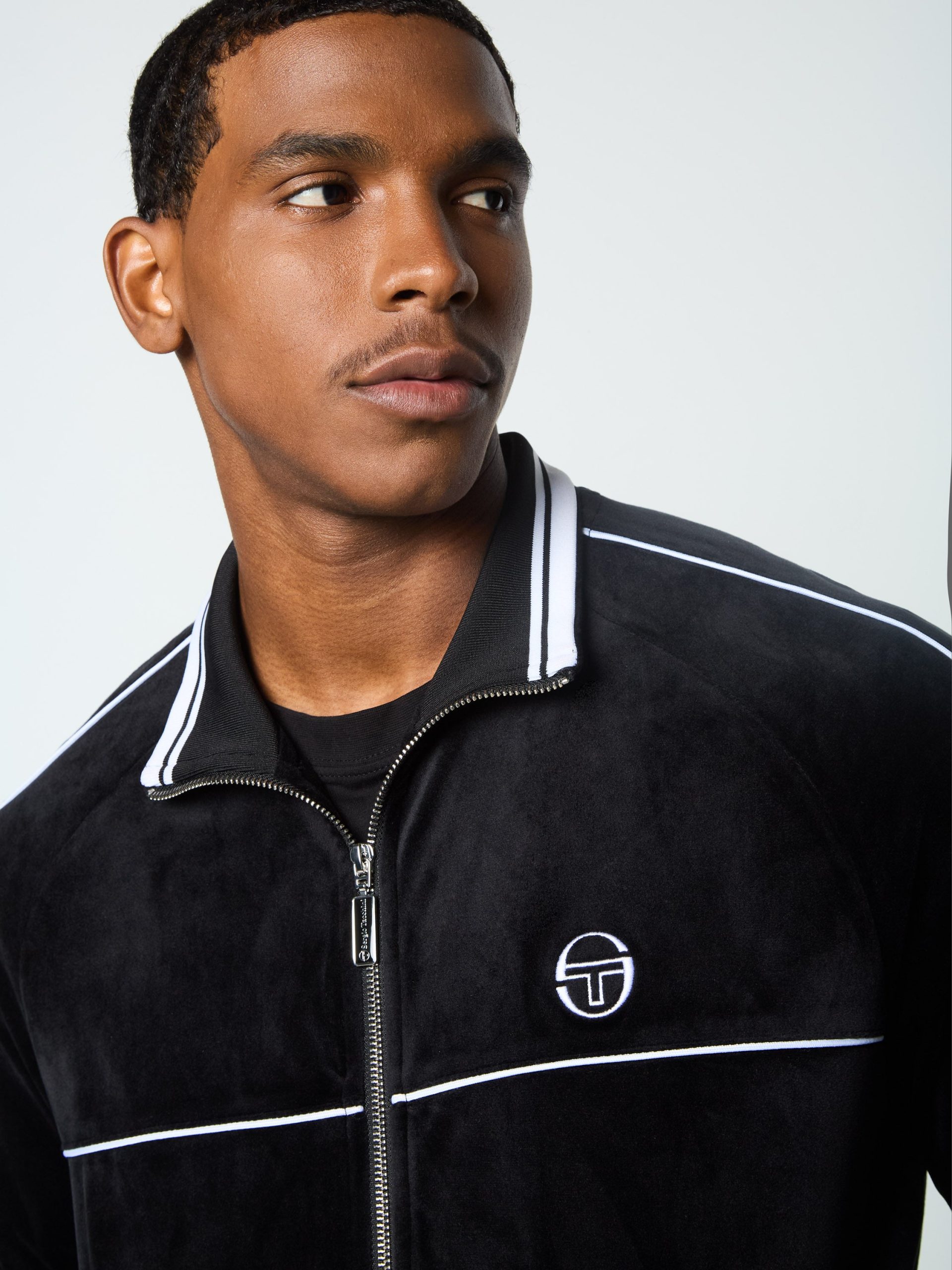 Elevate your everyday with our premium Lioni Velour Track Jacket, offered up in velvety velour for a plush hand feel with a luxurious finish. Featuring an embroidered ‘ST’ monogram logo at the left chest, this top-notch track jacket is complete with contrast piping details, tipping stripes inside the rib-knit collar, and zip-secured pockets.